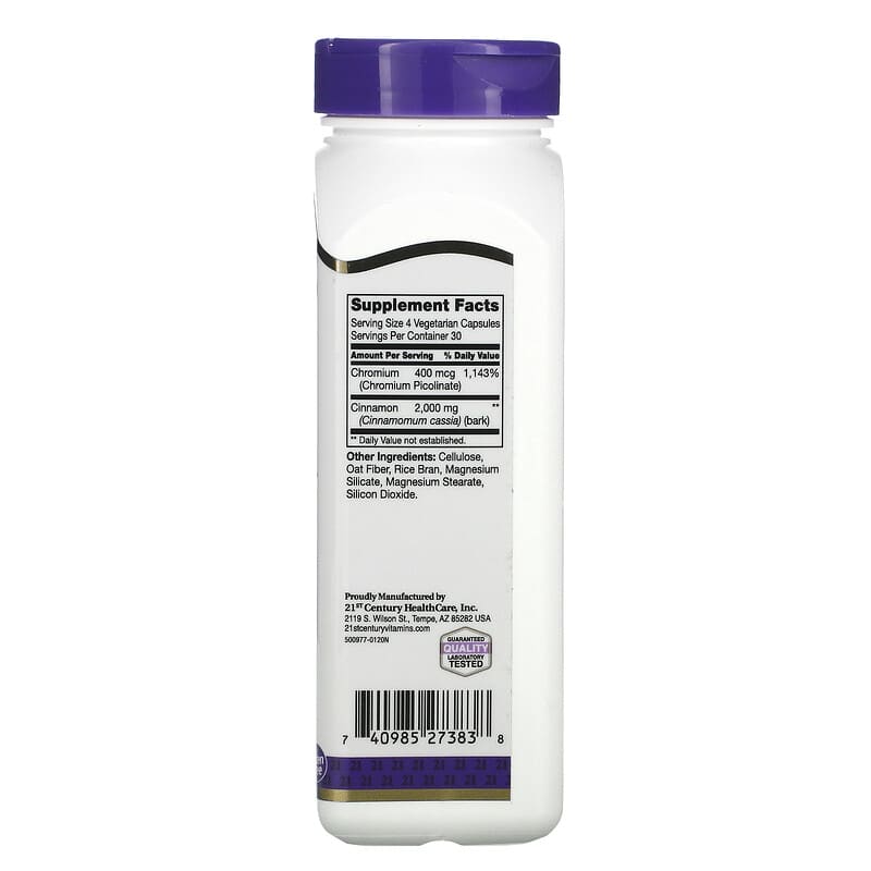 21st Century, Cinnamon Plus Chromium, 500 mg, 120 Vegetarian Capsules, hàng chính hãng 21st Century, mã vạch 740985273838