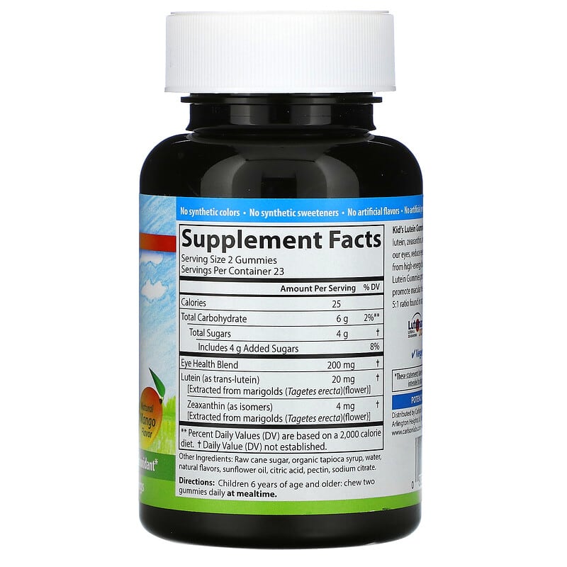 Thành phần của Carlson Kid’s Lutein Gummies Natural Mango 46 Vegetarian Gummies