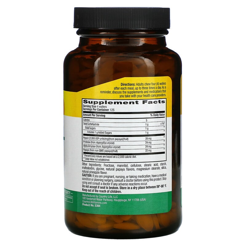 Thành phần của Country Life Tropical Papaya 500 Chewable Wafers