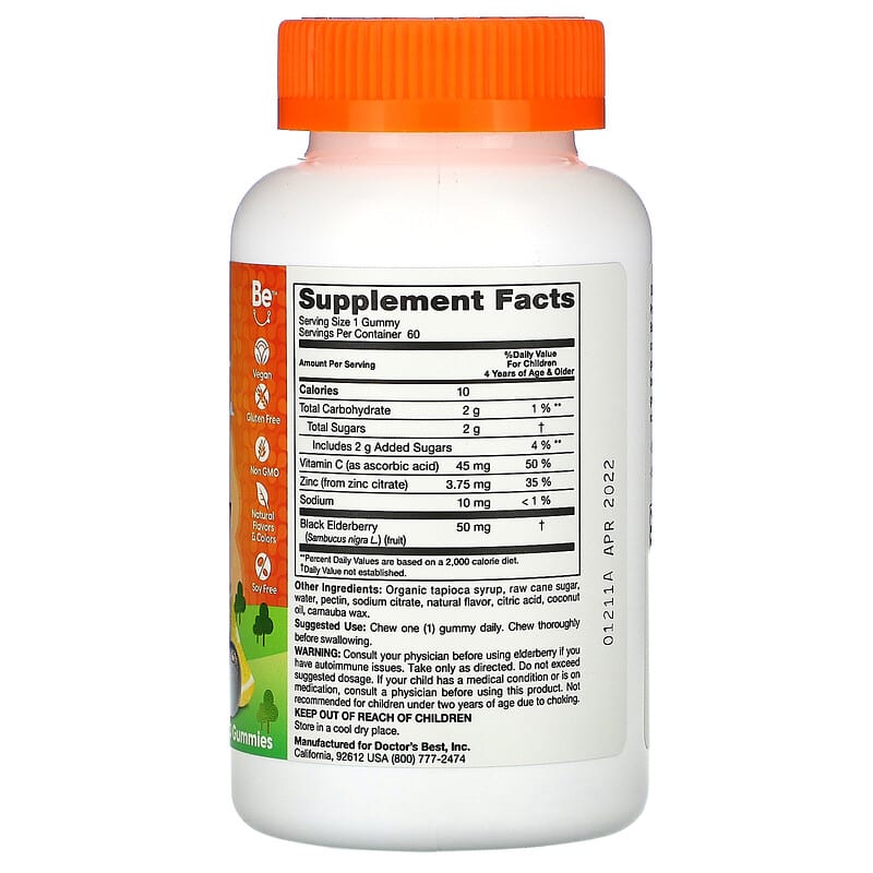 858 đánh giá cho Doctor’s Best Doc’s Kids Elderberry Gummies with Vitamin C + Zinc Berry Lemon Delight Flavor 60 Gummies