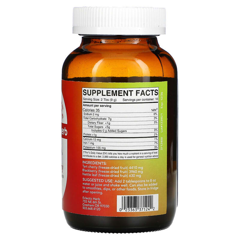 Eclectic HerbFor Peak Plant PowderDietary SupplementSupports Joint HealthWhole HerbsRaw100% KosherUS GrownVeganSoy FreeNon GMOConcentrated 17 X Through Freeze-Drying2 Tbs of Freeze-Dried Powder = 14 Tbs of Fresh HerbsFreeze Dried Fresh For Peak Plant PowerWe fresh freeze-dry locally grown fruit and herbs in small batches to support a healthy diet. Formulated by a naturopathic physician for joint support.
