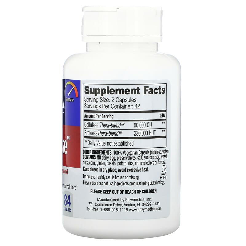 100% vegetarian capsule (cellulose, water).Contains NO dairy, egg, preservatives, salt, sucrose, soy, wheat, nuts, corn, gluten, casein, potato, rice, artificial colors or flavors.Enzymedica does not use ingredients produced using biotechnology.