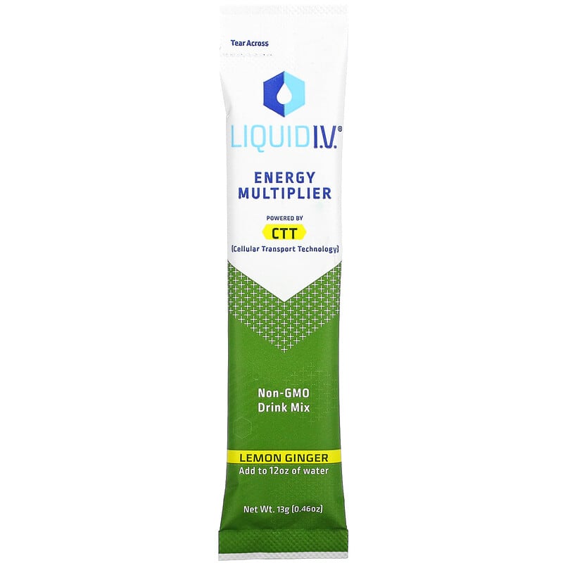 Liquid I.V., Energy Multiplier, Supercharged Energy Drink Mix, Lemon Ginger, 10 Stick Packs, 0.56 oz (16 g) Each, hàng chính hãng Liquid I.V., mã vạch 851741008790