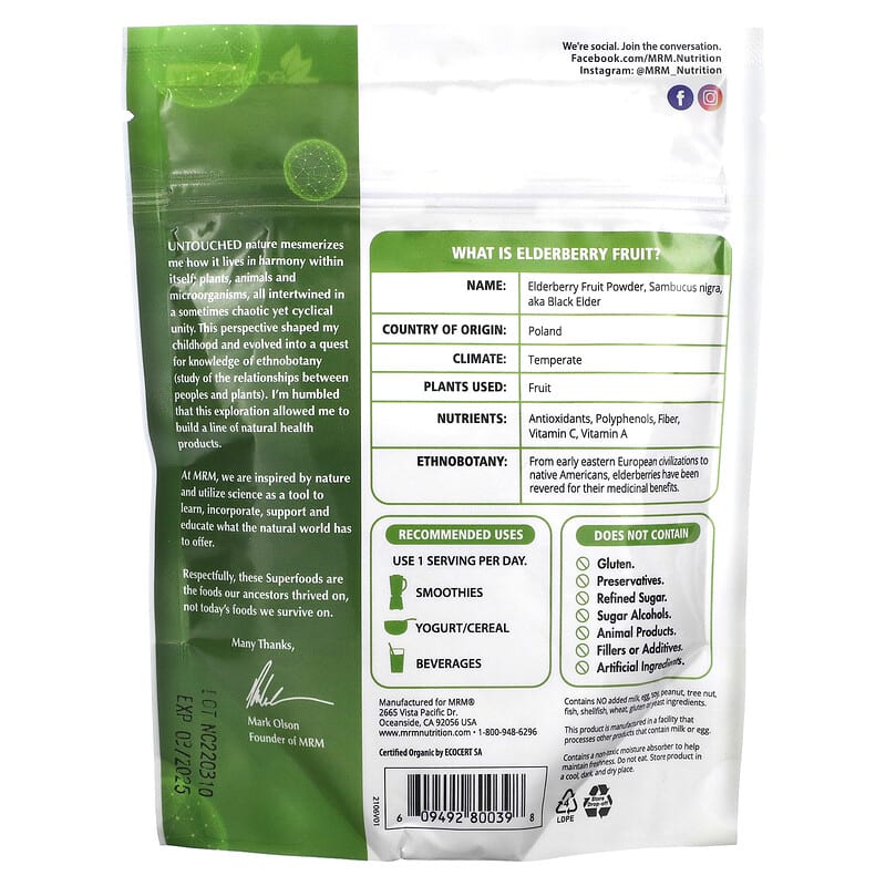 MRM Nutrition, Organic Elderberry Fruit Powder, 4 oz (113 g), hàng chính hãng MRM Nutrition, mã vạch 609492800398