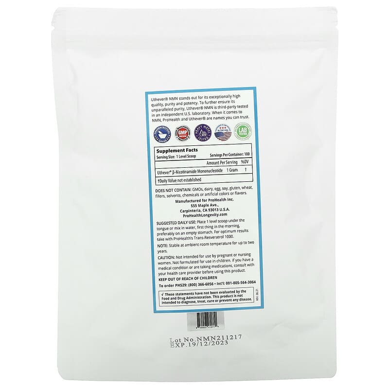 ProHealth Longevity, NMN Pro, Pure NMN Powder, 100 g, hàng chính hãng ProHealth Longevity, mã vạch 850023410719