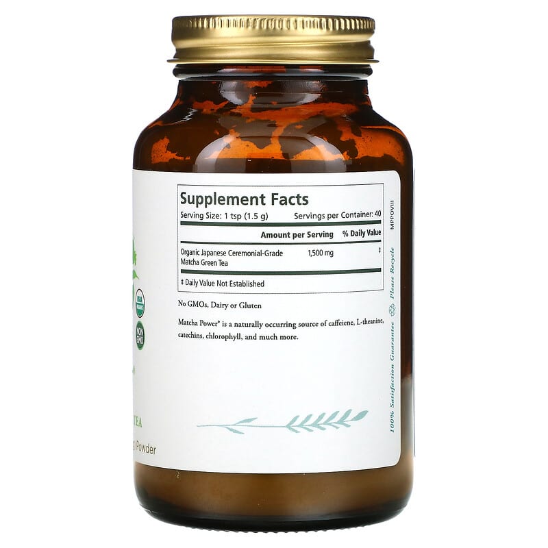 Organic Ceremonial Green TeaDietary SupplementUSDA Organic Non GMOs, Dairy or GlutenCertified Organic by Oregon TilthCertified KosherCertified B CorporationEnergize & Focus Our ceremonial-grade Japanese Organic Matcha Power® supports a healthy, energized state of calm alertness, focus and productivity for 4+ hours. Organic matcha green tea has more than 10 times the antioxidants compared to traditional teas and other top superfoods.