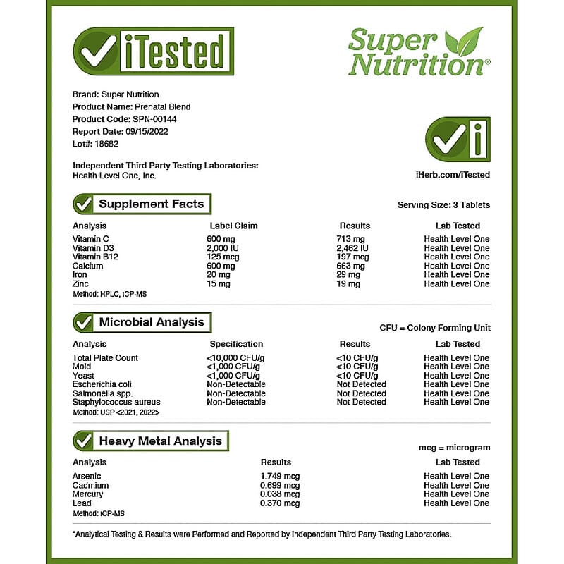 Super Nutrition Prenatal BlendHigh Potency Vitamin and Mineral Blend for Expectant and New Mothers*Featuring Folate and CholineSupports Prenatal and Postnatal Health*Formulated without Gluten or GMOsScientifically-Developed Dietary Supplement