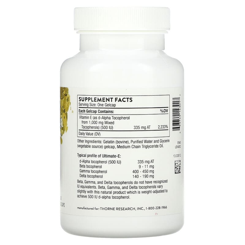 Lưu ý: Sản phẩm Thorne Ultimate-E 60 Gelcaps không phải là thuốc và không có tác dụng thay thế thuốc chữa bệnh.