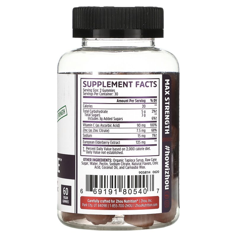 176 đánh giá cho Zhou Nutrition Max Strength Elder-Mune Sambucus Elderberry 60 Vegan Gummies